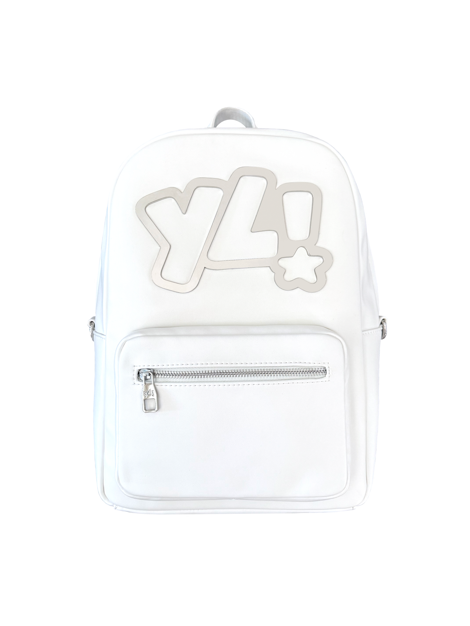 The YL Backpack features a YL! metal logo, custom zippers, and a front zipper pocket with an inner storage section including a padded laptop pocket that fits up to a 13" laptop or any iPad, and finished with adjustable shoulder straps, the perfect backpack for everyday use. Size: 14" x 11"